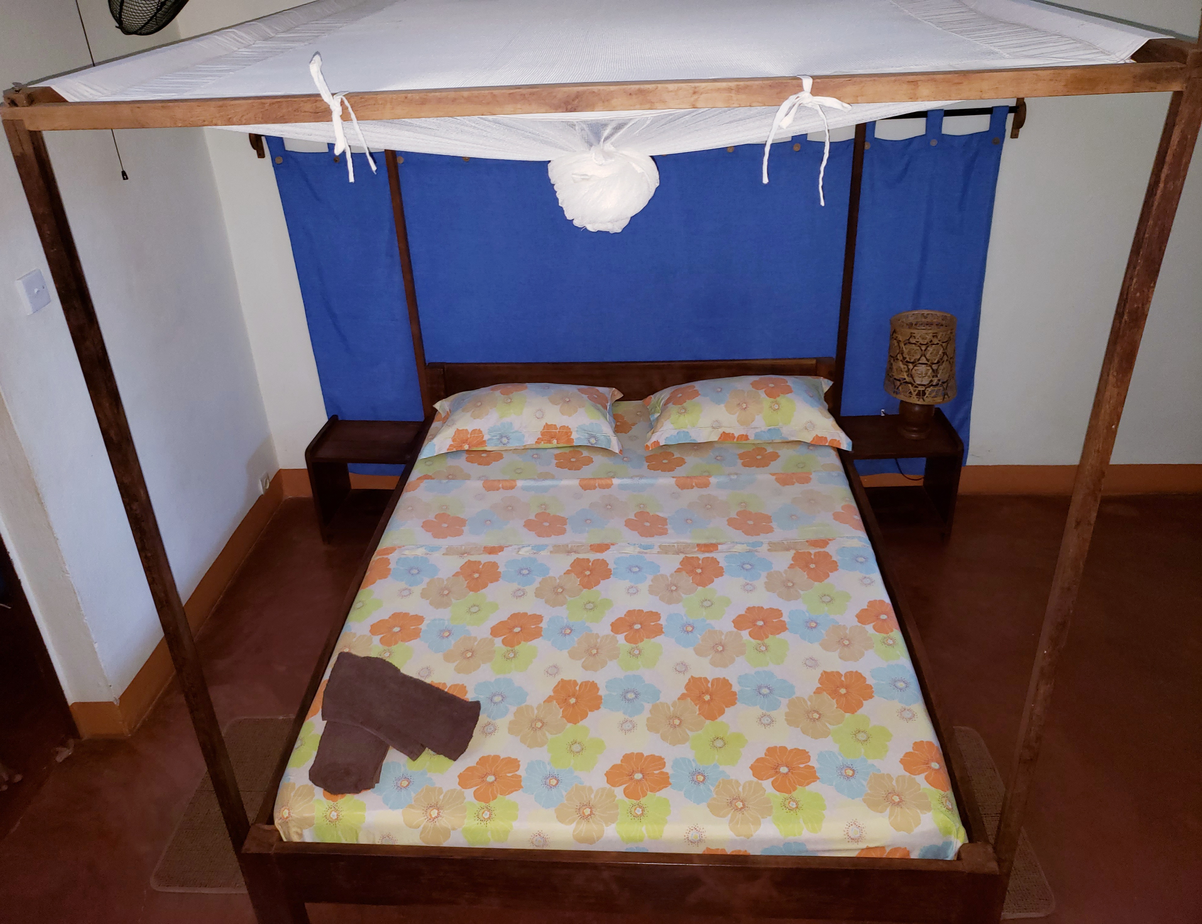 Notre chambre standard, idéale pour deux adultes, vous offre un espace confortable et fonctionnel. Elle est équipée d’un lit double, d’une salle de bain privative avec douche, et de tout le nécessaire pour un séjour relaxant. Décorée avec simplicité et goût, elle invite à la détente dans un cadre chaleureux.